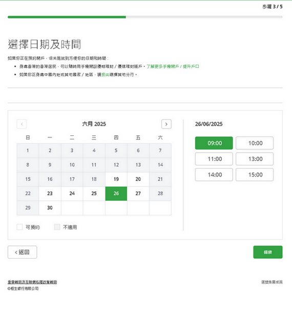 提交申請後,點按「立即預約」選擇你想前往的分行和時間。